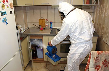 Перед обработкой генератором холодного тумана следует подготовить помещение для дезинсекции: убрать посуду, продукты, вещи. Детскую одежду и игрушки нужно упаковать в полиэтиленовые мешки. Мебель необходимо отодвинуть от стен. Кровати, диваны разложите. Приготовьте рабочий раствор инсектицида, строго действуя по инструкции, залейте в генератор. Затем обработайте все предметы, углы, плинтуса, мебель генератором холодного тумана. В конце обработки заполните всю комнату туманом и оставьте на несколько часов. После дезинсекции комнату тщательно проветривают, моют стулья, ручки дверей, столы, посуду, вещи стирают. Плинтуса, батареи, углы не убирайте 3 недели, а полы вымойте только через 11-23 дня, чтобы инсектицид продолжал действовать на клопов.